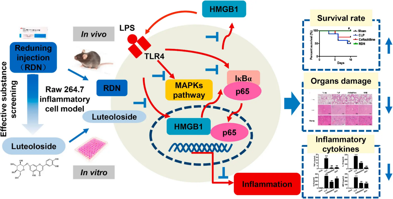 [4]Wang Z, Chen W, Li Y, Zhang S, Lou H, Lu X, Fan X. Reduning injection and its effective constituent luteoloside protect against sepsis partly via inhibition of HMGB1/TLR4/NF-κB/MAPKs signaling pathways. J Ethnopharmacol. 2021 Apr 24;270:113783.