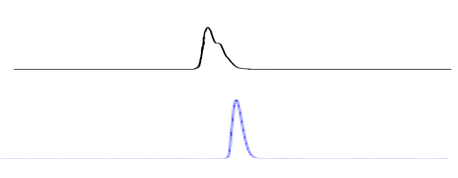 解決方案:使用與流動相初始比例極性相當的溶劑溶解對照品、或降低進樣量。