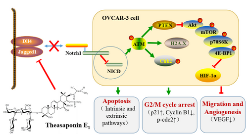 圖1 茶皂素E1對(duì)OVCAR-3人卵巢癌細(xì)胞抗癌作用的示意圖[1]