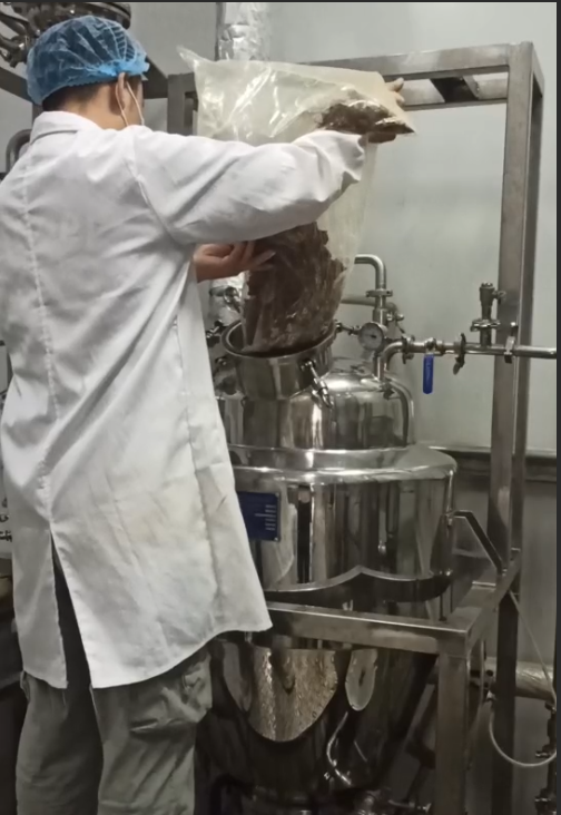 將含揮發(fā)油的藥材加入提取器中,加入適量的水浸泡,關(guān)閉提取器投料口。