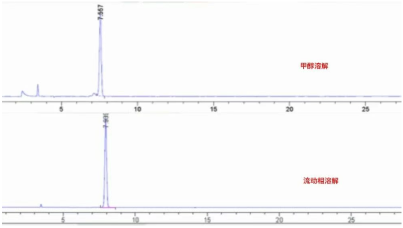 解決方案:通過對比對照品溶液放置前后的峰面積和峰形變化判斷對照品溶液的穩(wěn)定性,若確定為不穩(wěn)定,則需現(xiàn)配現(xiàn)測,或更換溶劑,規(guī)避不穩(wěn)定性因素。