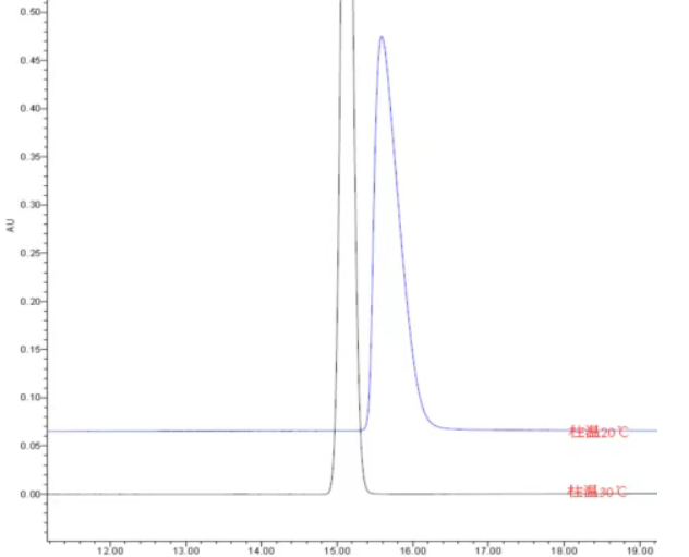 原因:柱溫設(shè)置過低,會使流動相粘度增加,對照品在柱內(nèi)的擴(kuò)散和傳遞速度變慢,可能會導(dǎo)致峰前沿。