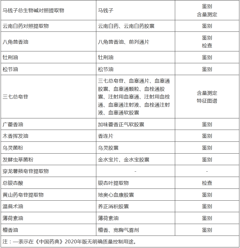 隨著近年來(lái)研究的發(fā)展和增多以及中藥配方顆粒的廣泛使用,現(xiàn)在有越來(lái)越多的中藥品種開始使用對(duì)照提取物,目前《中國(guó)藥典》2020年版已經(jīng)收載使用28種對(duì)照提取物,部分省市的中藥配方顆粒標(biāo)準(zhǔn)也有不少品種開始使用相應(yīng)的對(duì)照提取物,使中藥材(飲片)及其復(fù)方的質(zhì)量控制更符合中醫(yī)藥理論,也完善了其質(zhì)量控制評(píng)價(jià)體系。