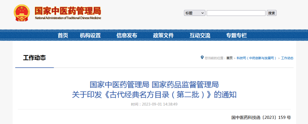 國(guó)家中醫(yī)藥管理局 國(guó)家藥品監(jiān)督管理局關(guān)于印發(fā)《古代經(jīng)典名方目錄(第二批)》的通知