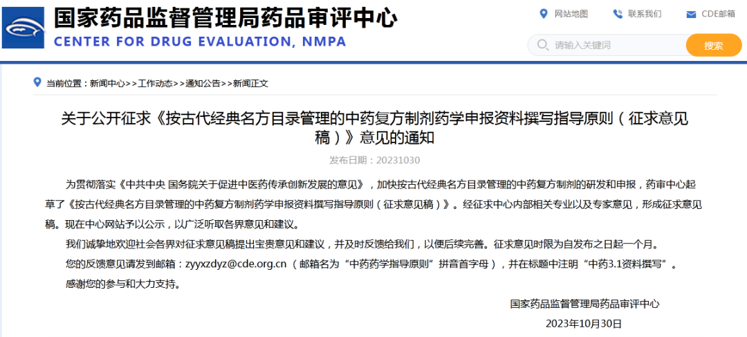 CDE發(fā)布3個(gè)關(guān)于中藥的指導(dǎo)原則征求意見(jiàn)稿